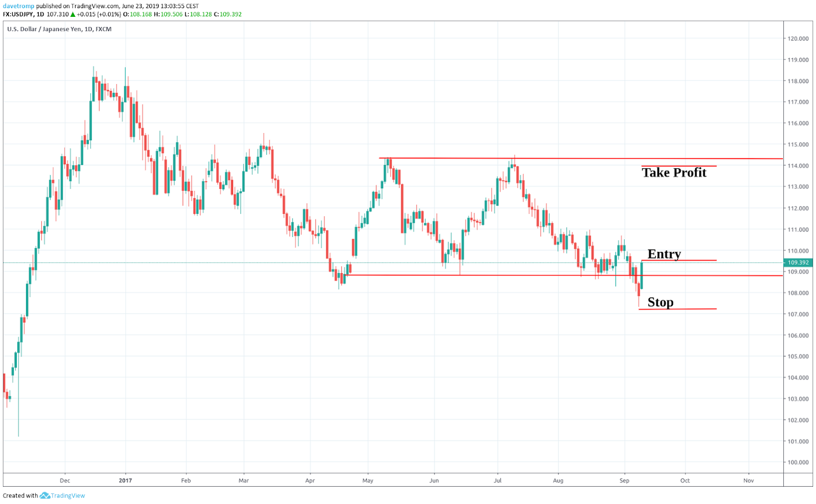 This example was very obvious, but sometimes it is not so obvious and we might have to scroll a lot to the left and zoom out to find relevant levels. Let’s look at the below chart for the USDJPY.